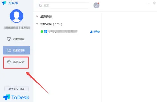 第一步:打开ToDesk,点击高级设置。
